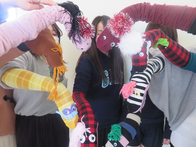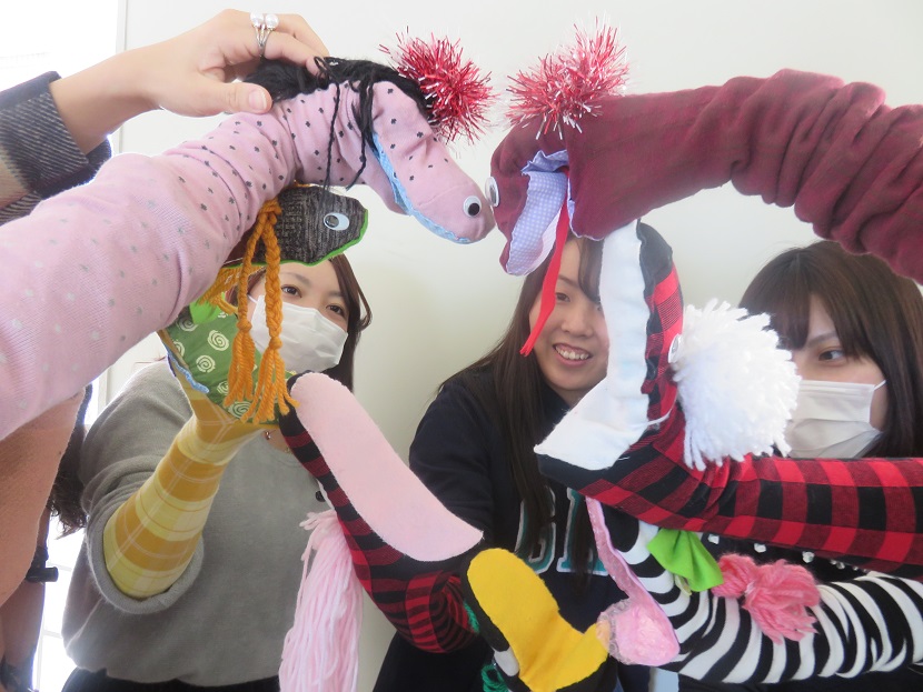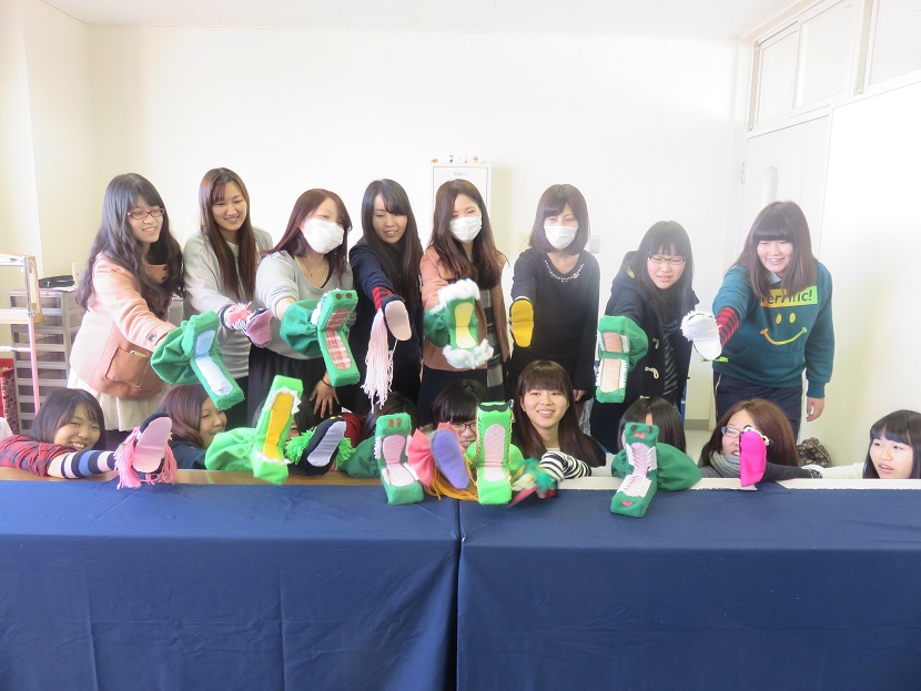 実際に2年生が自分たちで作った保育教材を使って演じながら、子どもたちの前で披露するまでの流れについてレクチャーしました。