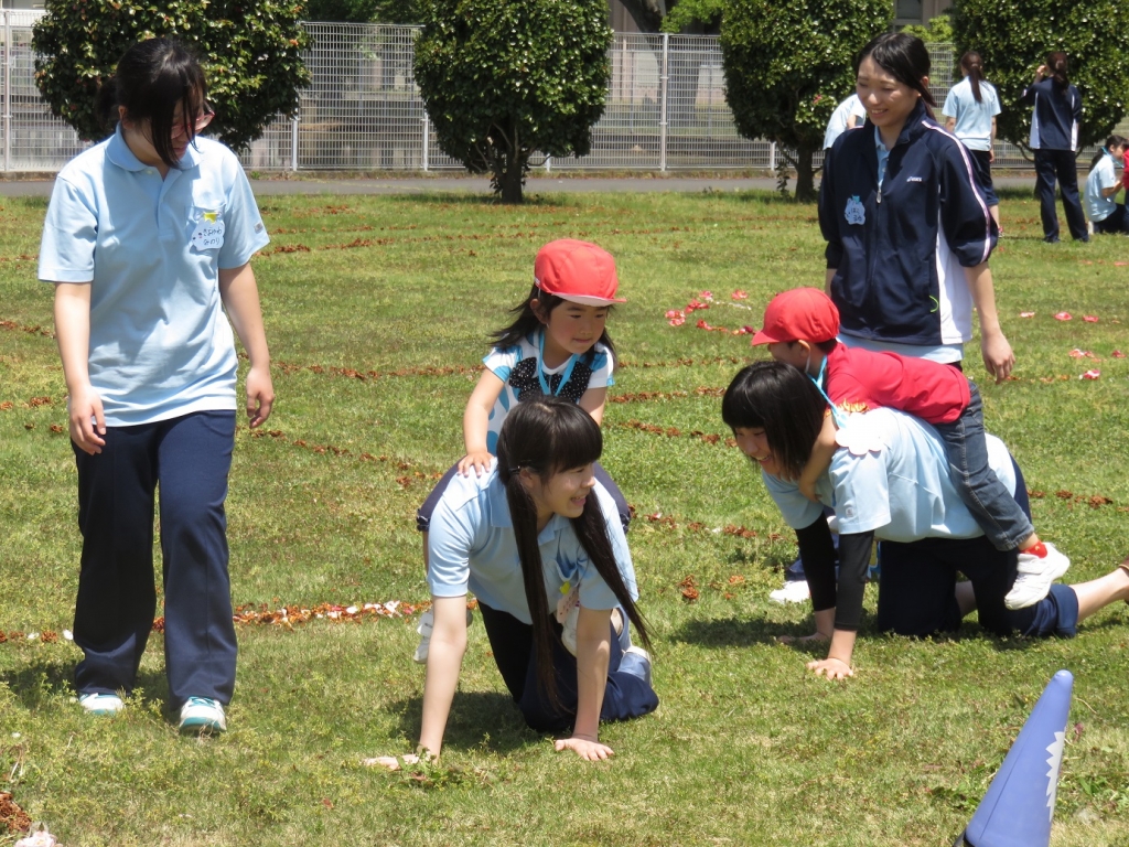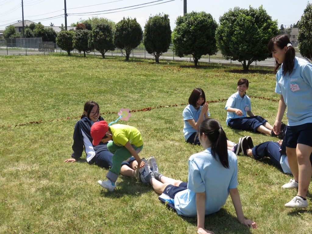 いっしょに遊ぼう!4歳児 2015 5/01 こども学科 5 月1日(金)、五月晴れの下、短大のグランドで、認定こども園大成学園幼稚園の子どもたちと保育科1年生の「いっしょに遊ぼう!」という活動が行われました。椿の花を並べて作った迷路を回りながら、子どもたちは、学生たちが用意したいろいろなコーナーで遊びを楽しみました。 こども学科 前の記事へ 記事一覧へ 次の記事へ