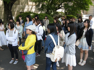 当日は,初夏を思わせる快晴で,人気のある国宝の見学だったので延べ3時間近く待ちましたが,平安後期の動物や当時の人たちが描かれた巻物を見て学生たちは興奮していました。