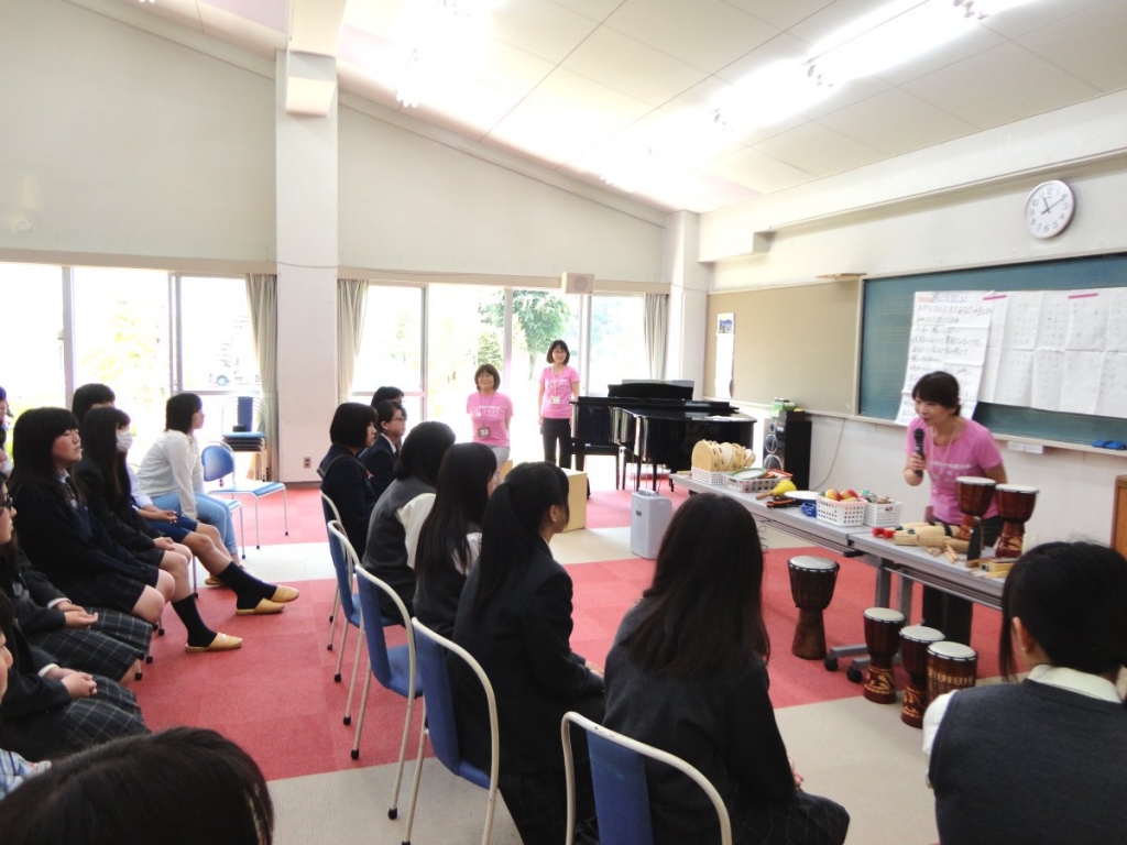 和やかな雰囲気の中で、手遊びや体を使った遊び等の体験授業を行いました。