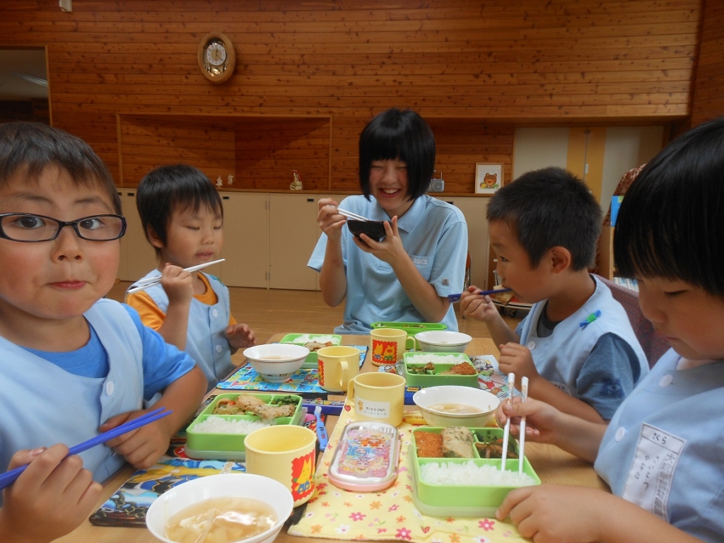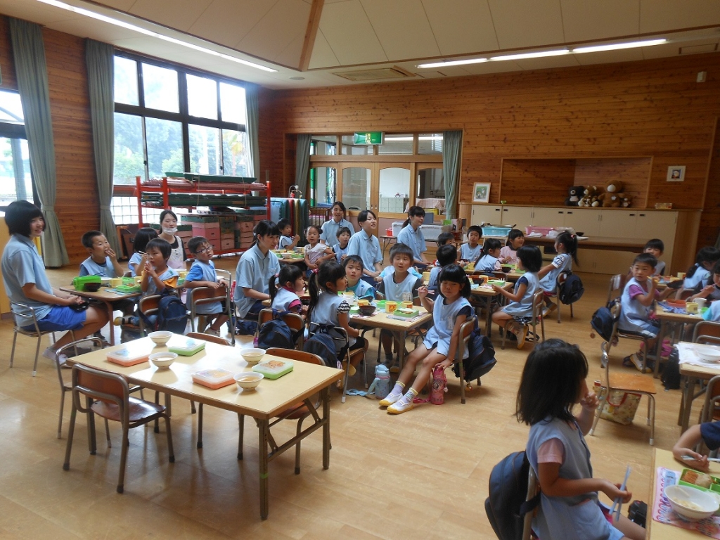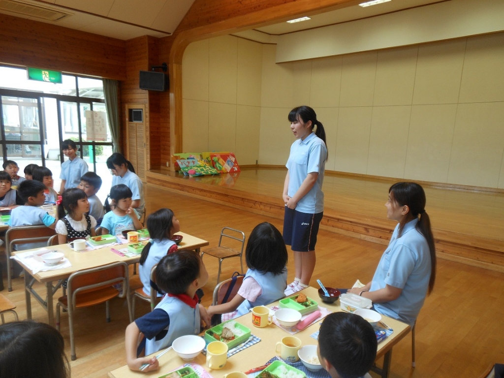 「みそ汁会食会」に招待されました! 2015 6/15 こども学科 6月12 日(金)の昼食時、大成学園幼稚園の年長組さんが作ってくれた「ジャガイモのみそ汁」をごちそうになってきました。短大のお姉さんたちと一緒に育て収獲したジャガイモで何か作って、みんなで食べようと話し合いが行われたそうです。 学生たちも子どもたちといっしょに食べる機会ができたことに喜びを隠せないようでした。 幼稚園のみなさん! ごちそうさまでした。 こども学科 前の記事へ 記事一覧へ 次の記事へ