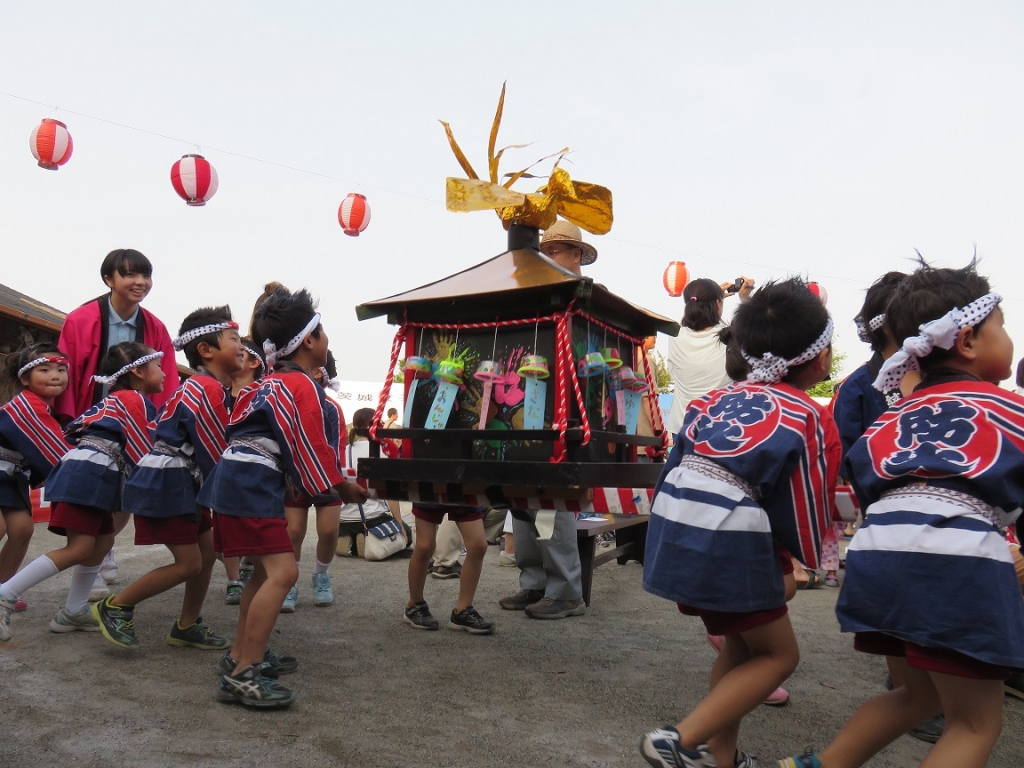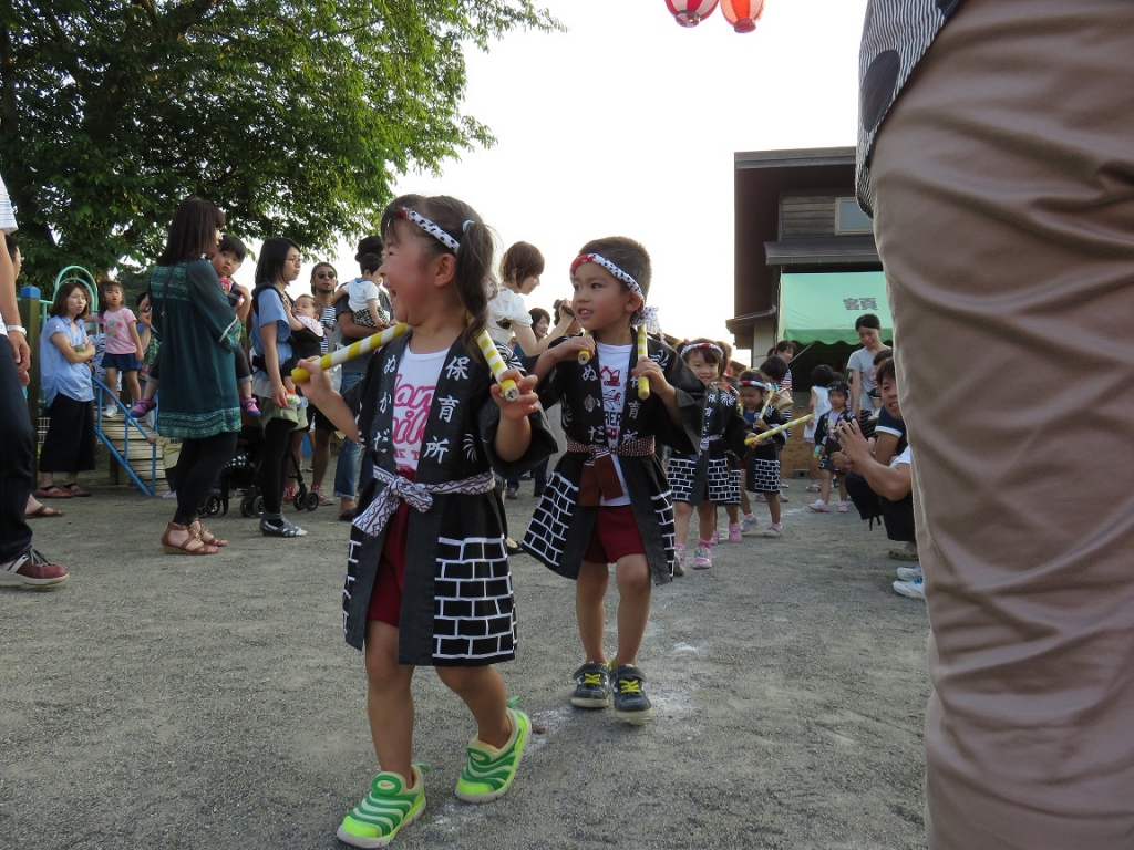 3,4歳の子どもたちも祭り袢天を着て、お祭りの雰囲気をからだいっぱい楽しんでいました。