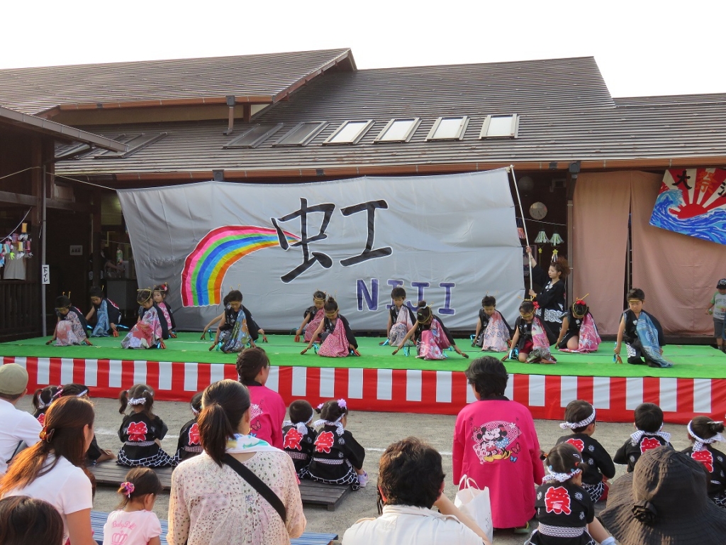 ステージの上で元気いっぱいに踊る子ども、そして華やかな衣装は、