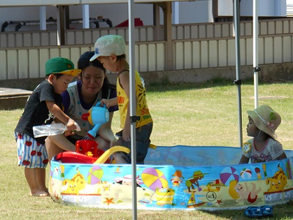 第5回 おやこひろば『ぽぽ』 2015 7/21 こども学科 気温が上がり、水遊び日和となった7月21日(火)に第5回 おやこひろば『ぽぽ』が開催され、この季節ならではの遊びをじっくり楽しみました。 プールで水遊びやシャボン玉 お洗濯ごっこと粘土 学生にもすっかり慣れて、一緒にリズム遊びをしました。 目をキラキラ輝かせて、大型絵本に見入っていました。次回は10月6日(火) 短大芝生広場や砂場で遊びましょう。皆様のお越しをお待ちいたしております。 こども学科 前の記事へ 記事一覧へ 次の記事へ