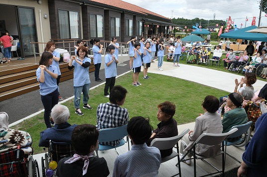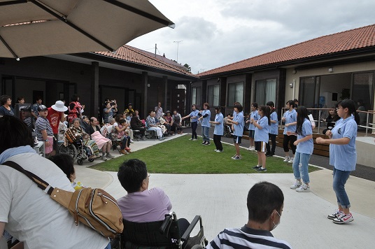 8月24日(火)茨城女子短大の近くにある老人ホーム「えくぼ」で納涼祭がありました。表現文化学科の1年生がスタッフのお手伝いをしました。