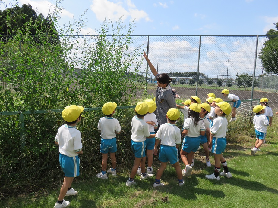 雑草に覆われている畑を見て、さつまいもが見えなくてかわいそうだからみんなで草取りをしようということになりました。