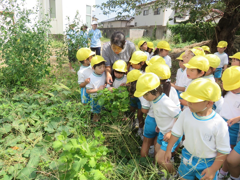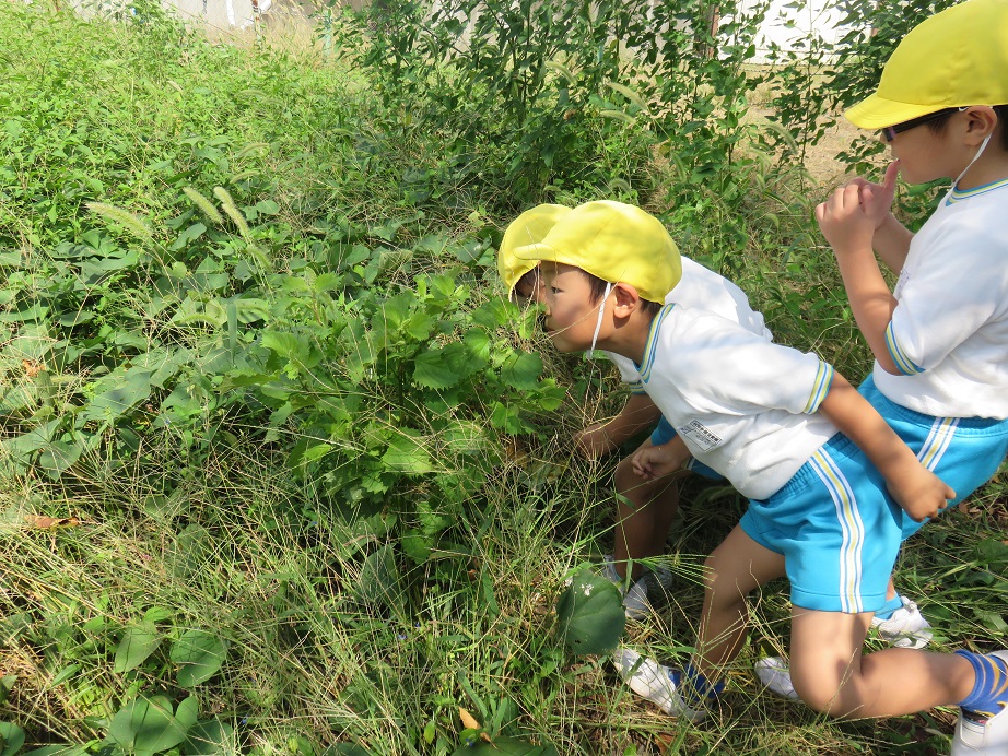 すると、さつまいも畑に紛れ込んで出ていたシソの葉を見つける子がいました。