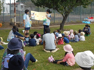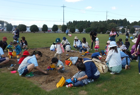 第6回 おやこひろば『ぽぽ』 2015 10/09 こども学科 10月6日(火) 第6回 おやこひろば『ぽぽ』が青空の下で開催されました。広々とした芝生の広場で、砂場やバランスボール、太鼓橋などでのびのびと遊びました。 ふれあい遊びや大型絵本を見て、みんなと一緒の活動も楽しみました。 次回は10月20日(火)です。皆様のご参加をお待ちしております。 こども学科 前の記事へ 記事一覧へ 次の記事へ