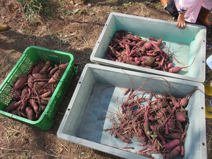 大きな収穫でした。少ないお芋をそれぞれの園が分け合って、お土産に持ち帰りました。