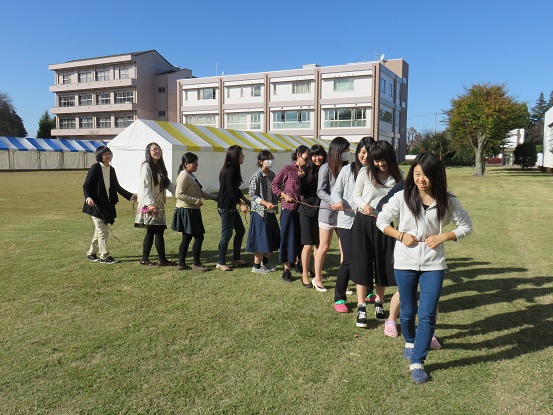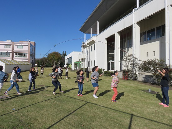 身近な素材をうまく活用すれば、一人でも二人でもできる遊びがたくさんあることに気づく学生たちでした。友だちといっしょにできる遊びは、やっぱり大縄跳び!