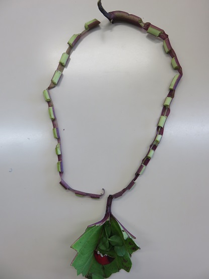 最後は、いもの葉で作った「さつまいものネックレス」・・・