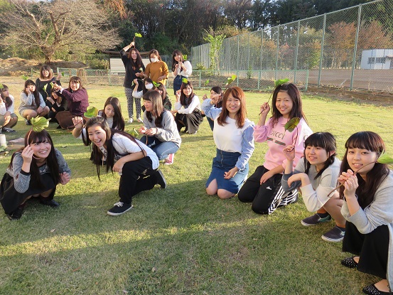 保育内容演習「環境」の授業では、自然物に親しみながら遊べるものを探しに出かけました。