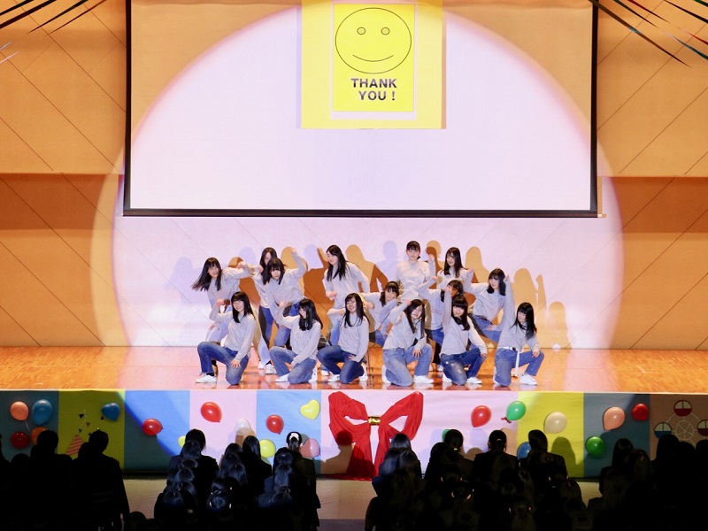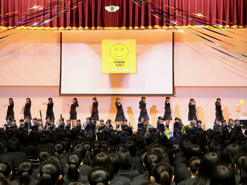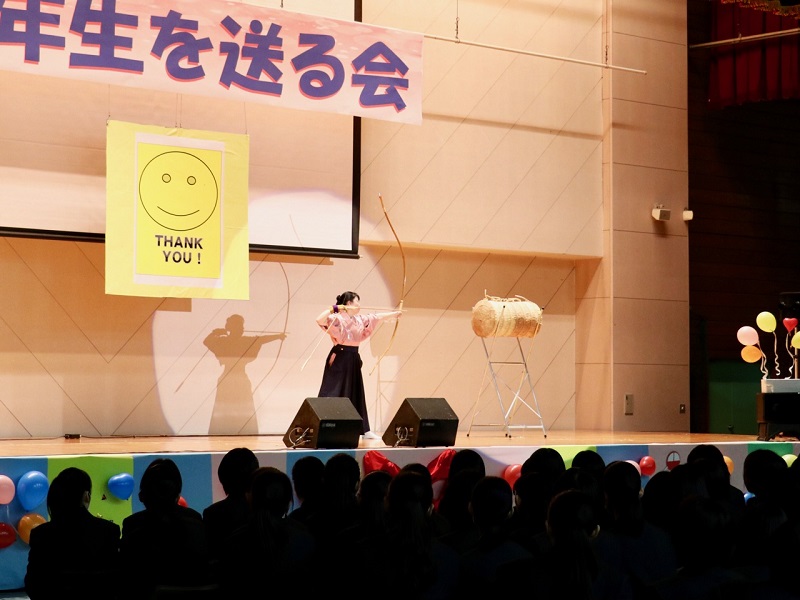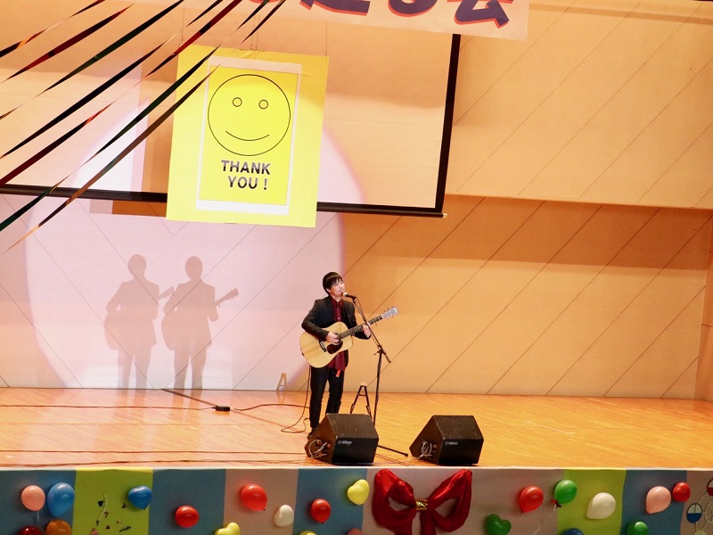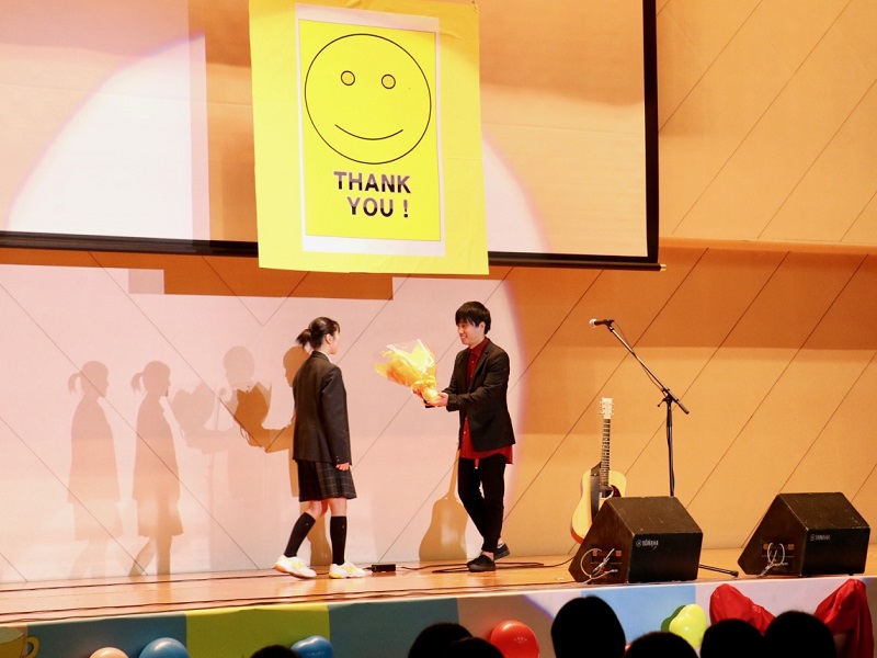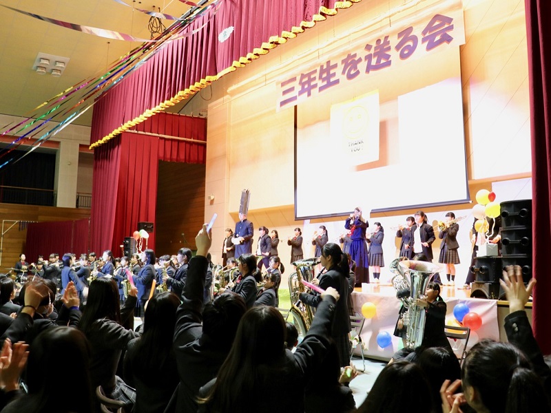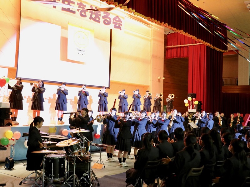 茨城県を中心に活動しているシンガーソングライター、海老沢寛樹さんによるスペシャルライブで幕を開けた後、部活動や有志によるパフォーマンスや先生方からのビデオレター、3年間の思い出をたどるスライドショーなど、盛りだくさんの企画で3年生に感謝の気持ちを伝えました。