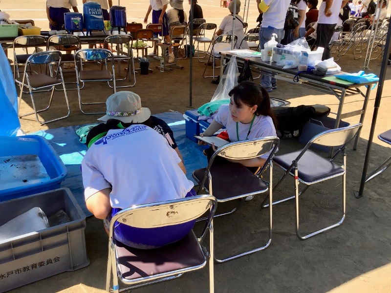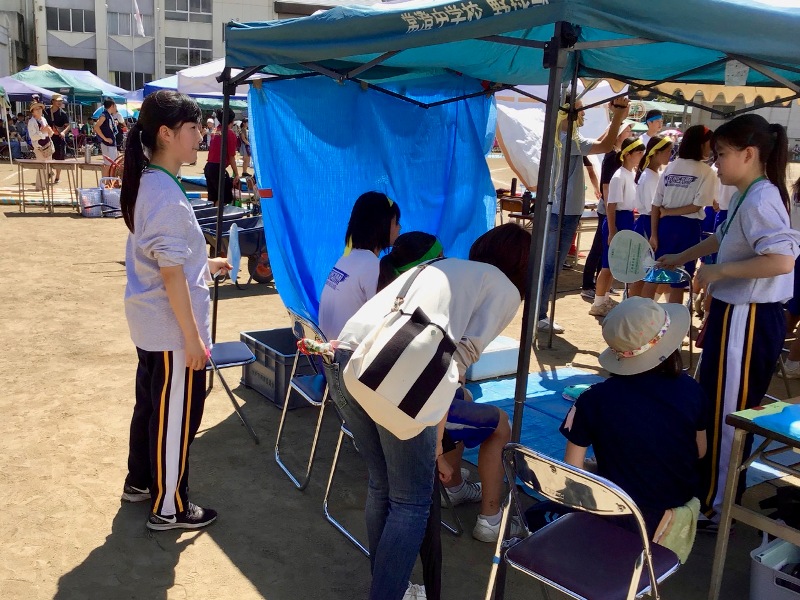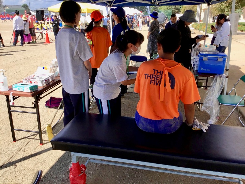 各学校工夫を凝らした競技が行われ、生徒も先生も保護者の方も真剣に取り組んでいました。暑さもあり救護所を利用する中学生は多かったように思います。