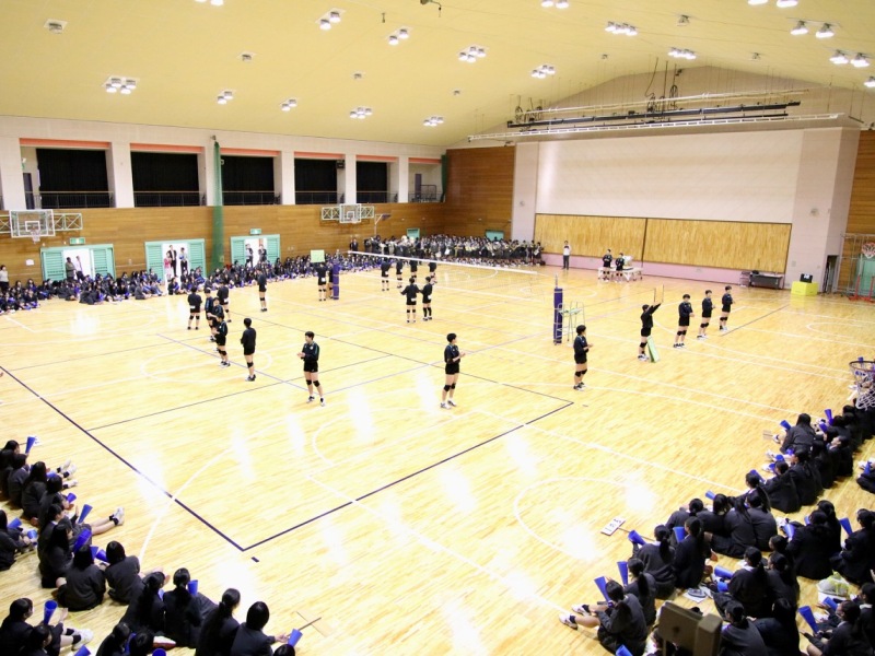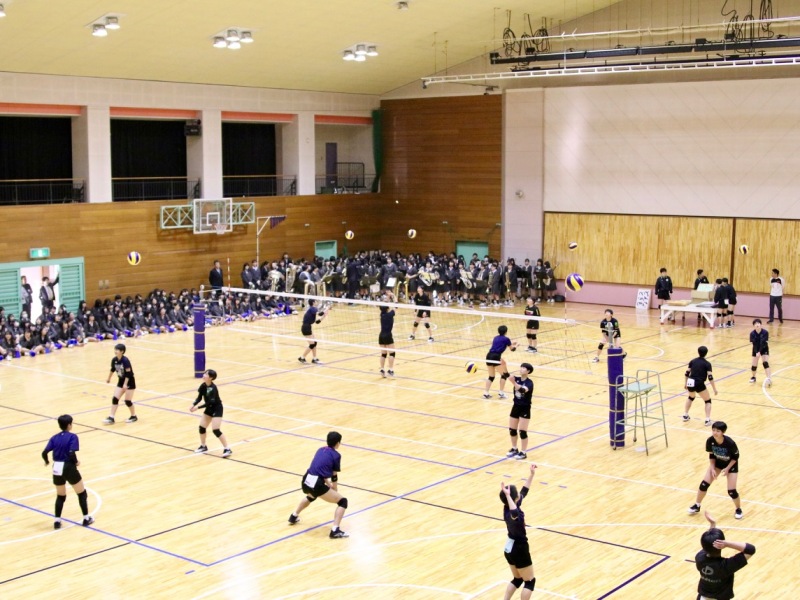 11月5日、バレーボール部員が中心となり「春の高校バレー」の全校応援練習を行いました。