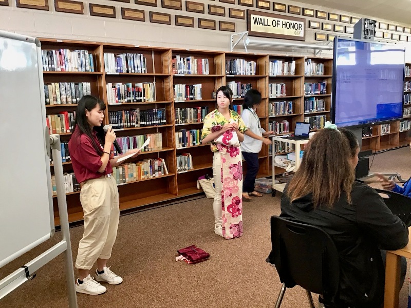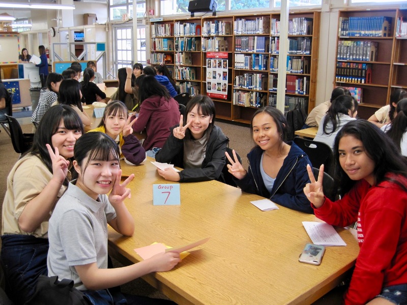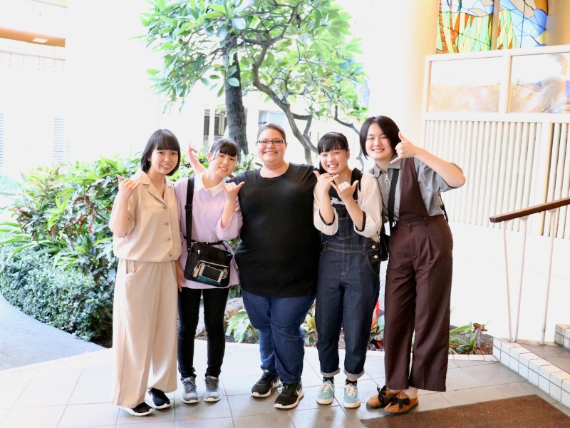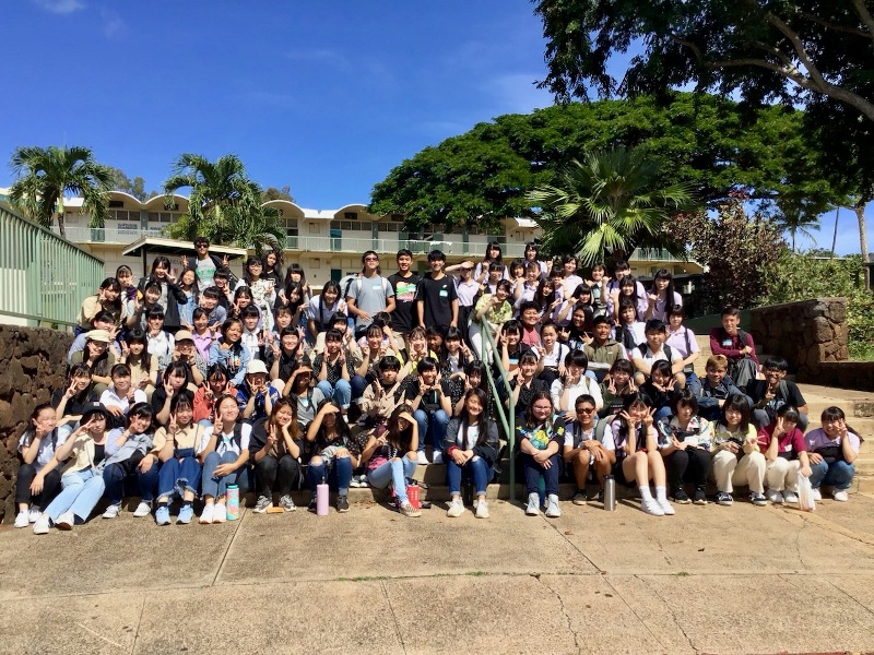 家政科・看護科はパールハーバーを見下ろす高台にあるアイエア高校での交流会。午後はロイヤルハワイアンショッピングセンターでのフリータイムを満喫しました。