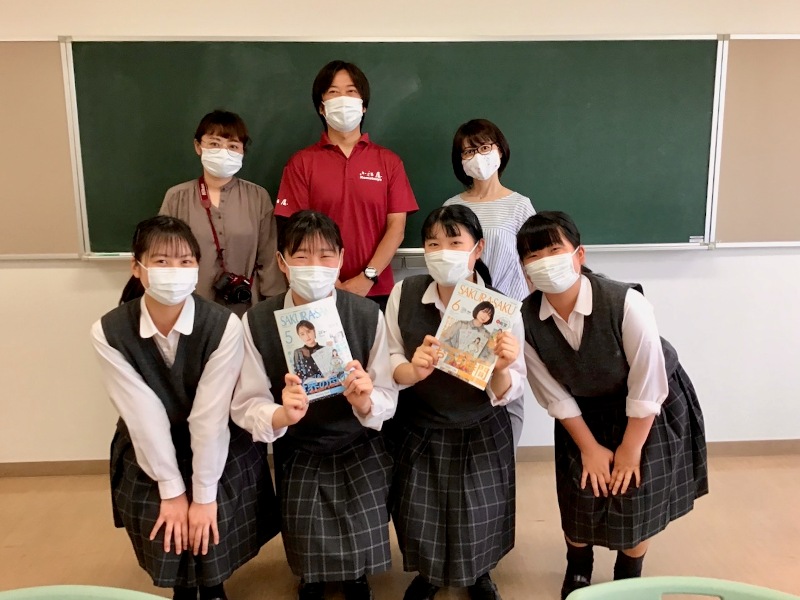 先輩から聞いていた梅こしょう開発の経緯や学校や授業の様子などをお話しさせていただくとともに、梅こしょうを製造してくださった小松屋さんの思いなども伺うことができ、とても楽しい取材でした。また、この取材のために、家政科2年生のみなさんがとても美味しそうな梅こしょうのアレンジレシピを考えてくれました。