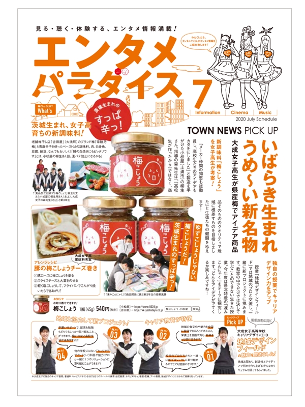 キャリアデザインの授業の1つ、地域デザインフィールドの卒業生が2年かけて開発し、2月27日発表した「梅こしょう」をサクラサクライフ 7月号でご紹介いただきました!今回は地域デザインフィールドの授業や学校の様子も取材いただきました。