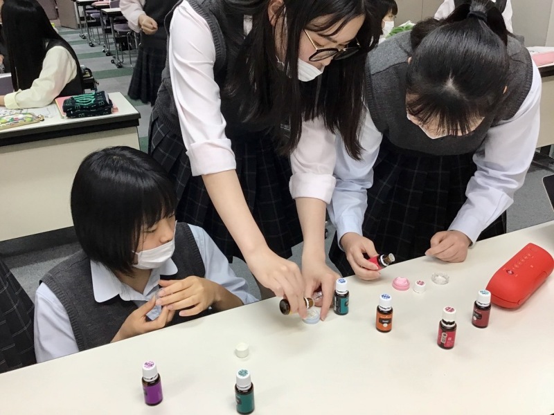 6月19日(金)、普通科キャリアデザインホスピタリティフィールドの3年生は、アロマ和太鼓セラピスト・田口優子氏をお招きし「アロマ教室」2回目が行われました。