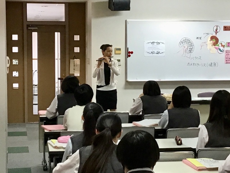 「受験生として悩むことが多く爆発しそうな状態でした、この授業で助けてもらいました。ものすごく疲れていた私は『オレンジの香り』が自分にあっていたようです。先生が篠笛を演奏してくださり、その音楽とオレンジの香りで体がリラックスでき、涙があふれそうでした。先生が言っていた『嬉しいこと・やりたいこと』をノートに書いて夢を確実に達成していこうと思います。」