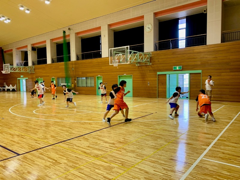 午前はファンダメンタルの練習をしました。シュートのステップをすぐに覚え1対1で実行していました。