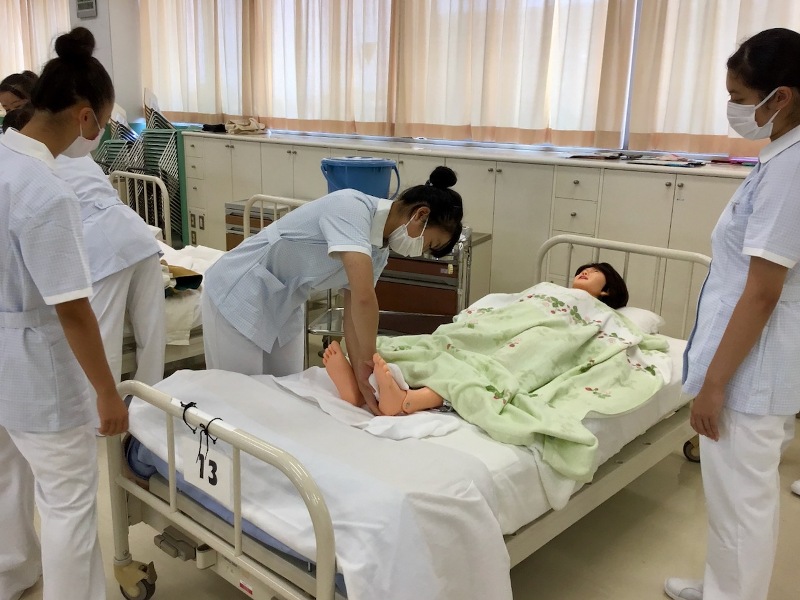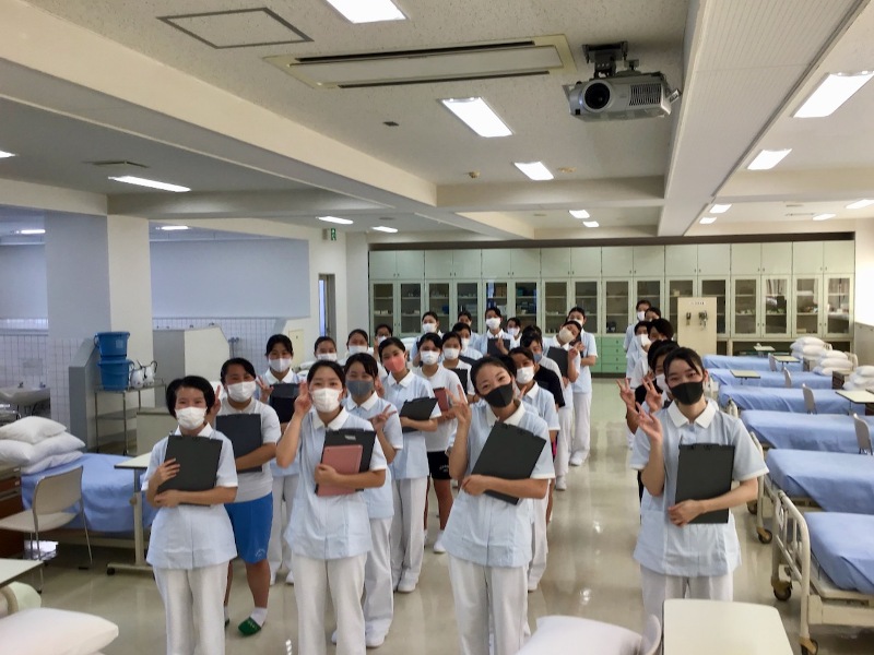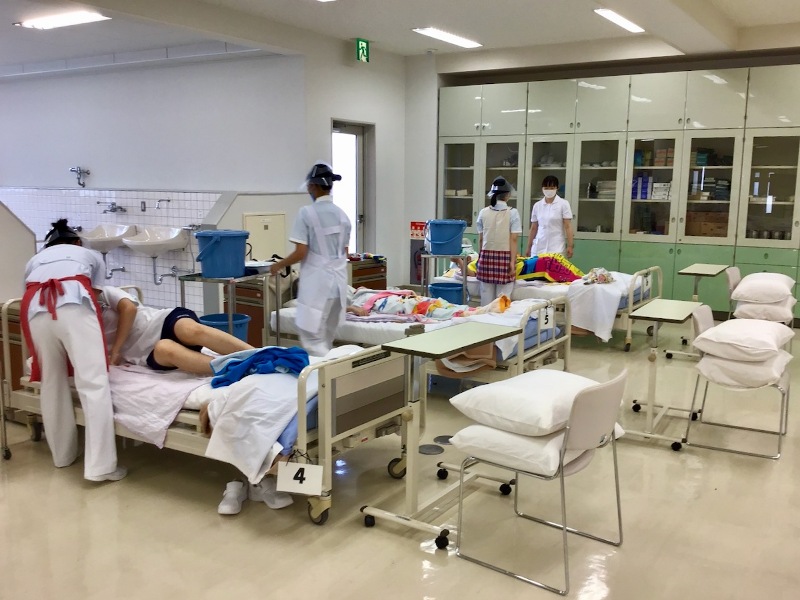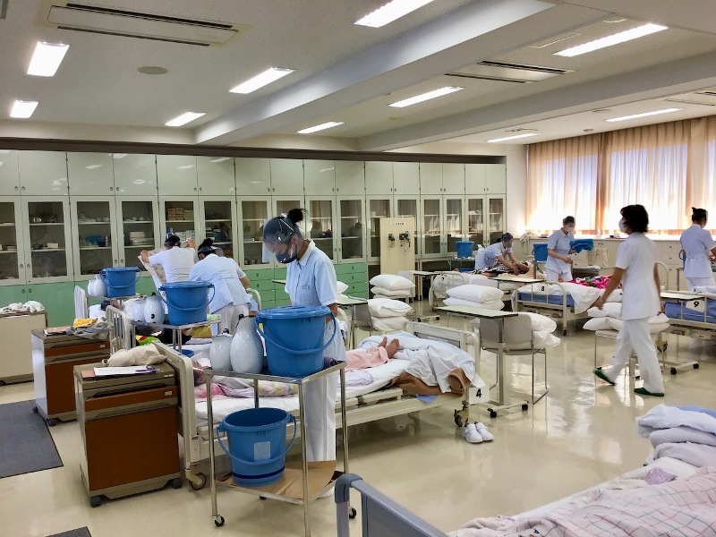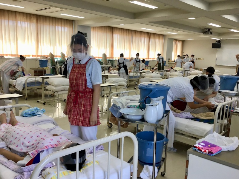 8月25日・26日、看護科1年生はベッドメーキング に続き、全身清拭の実習に入りました。