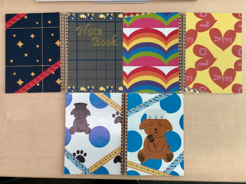 2年生のアート表現フィールド選択者は、マスキングテープ、オリジナルキャラクターなどのデザインを考えるところから始めたノートが完成しました。
