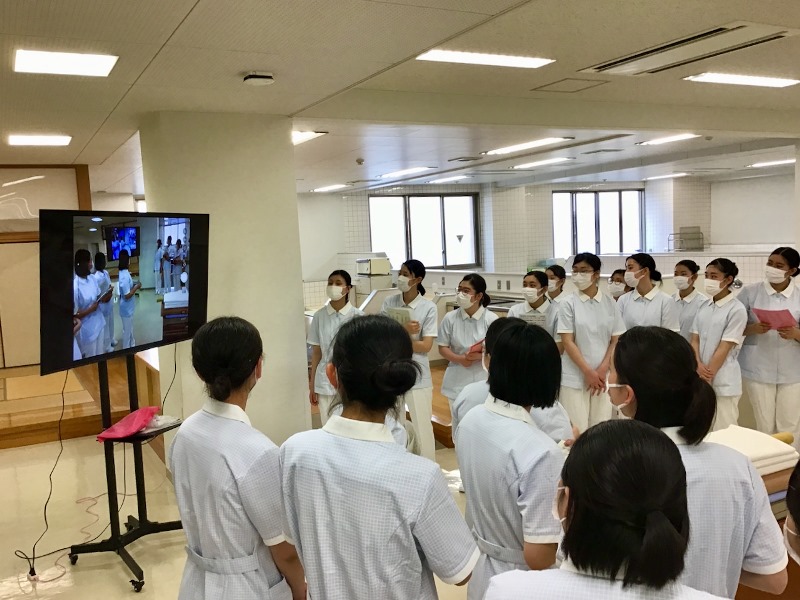 「実習を通して学んだことは、病室での看護師としての立ち振る舞いや言葉遣いです。普段友だちや家族間で使う現代言葉をつい使ってしまうことが今回の実習中多くありました。患者さんがいなくても手を組んだり寄りかかったり、『やばい』とか『めっちゃ』という言葉を控えるように普段の生活から心がけます。」