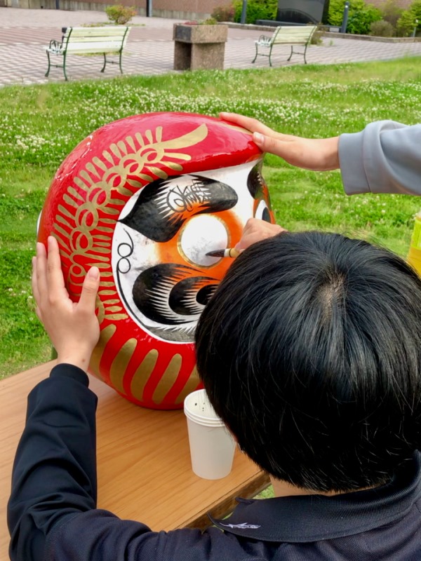 5月23日(日)、お正月に購入しただるまへの目入れをしました。練習試合も大会もずっとベンチに座わり、一緒に戦ってきただるまです。「ありがとう」の感謝の気持ちを込めて、部員全員で墨を入れました。