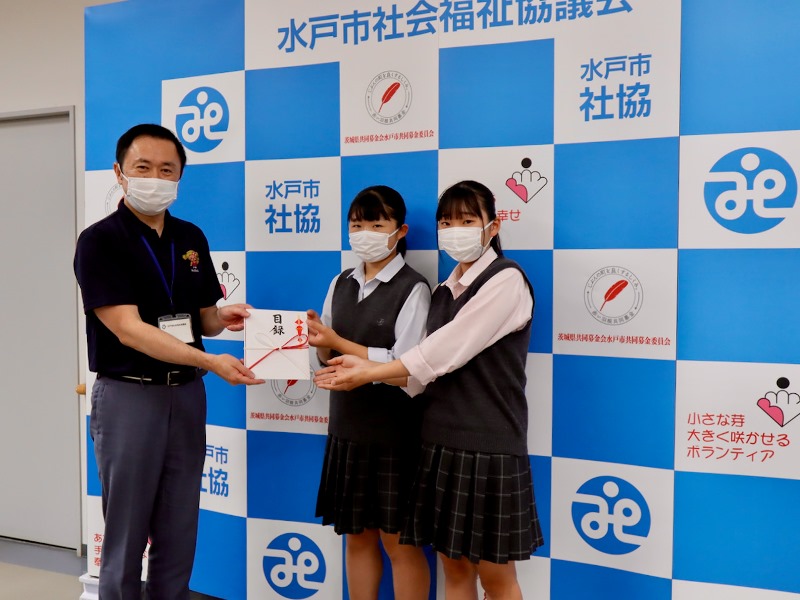 5月17日〜21日に家庭クラブ週間として、福祉事業への募金活動を実施いたしました。各クラスの家庭クラブ代表委員を中心にクラスで呼びかけをし、全校で14,457円を水戸市福祉協議会に寄付することができました。