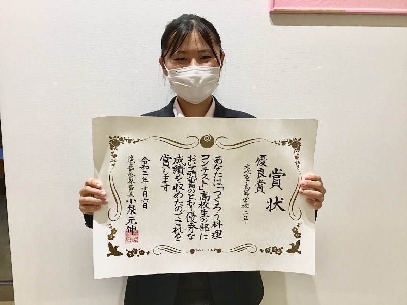 家政科2年生が令和3年度児童生徒の食育推進事業「つくろう料理コンテスト」の書類審査において、優良賞をいただくことができました!