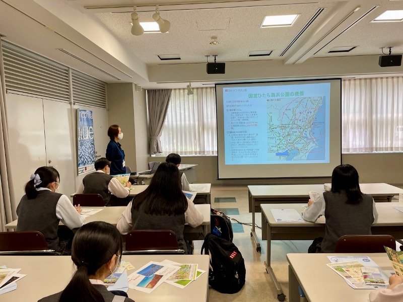 「茨城(水戸・ひたちなか地域)の魅力やホスピタリティについて探究する」をテーマに観光スポット巡りに行ってきました。各施設の担当者から施設の概要やホスピタリティの取組事例をご紹介いただきました。国営ひたち海浜公園の企画調整課浅田様からは、「自発的に考えた行動がお客様に大きな影響を与えていることを認識できた時、また相手との相互作用によって得られる会話や行動は予想以上に自分のモチベーションを高めている」とホスピタリティを意識したお仕事のやりがいなどを話してくださいました。