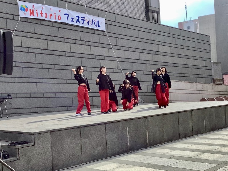11月13日(日)mitorio地区(水戸芸術館、水戸市民会館、京成百貨店)を会場に行われた、mitorioフェスティバル(水戸市民会館プレオープン事業)のステージで、ダンス発表をさせていただきました。3年生が引退し、新体制で臨んだ最初の大きなステージでした。