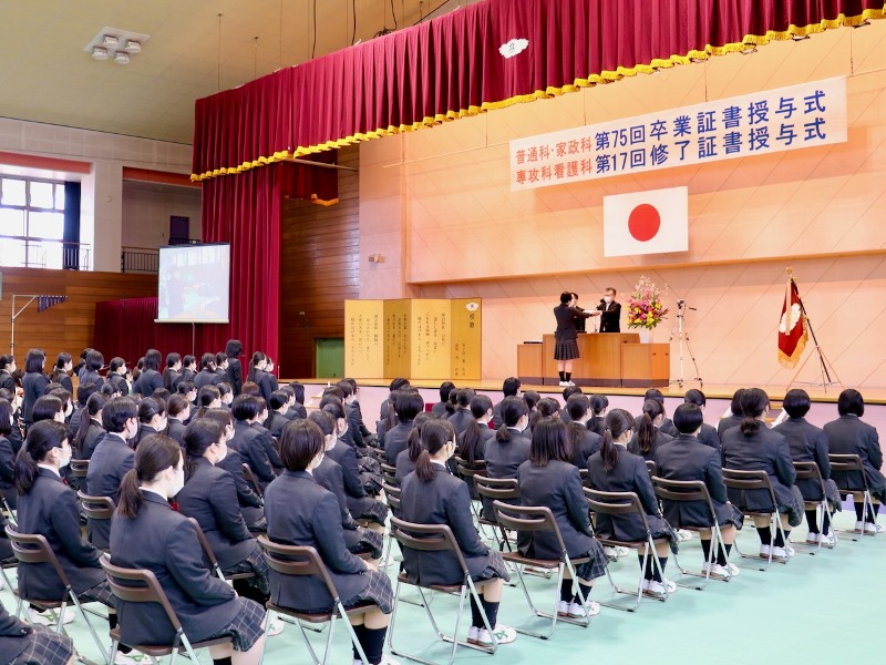 普通科・家政科卒業式、専攻科看護科修了式を実施しました 2023 3/01 ニュース メディア 3月1日、本校体育館にて「普通科・家政科第75回卒業証書授与式 専攻科看護科第17回修了証書授与式」を実施しました。 ニュース メディア URLをコピーしました! 高校生のもったいない!から生まれた「栗の渋皮ほうじ茶」できました! 専攻科看護科 第17回修了証書授与式 コメント コメントする コメントをキャンセルコメント ※ 名前 ※ メール ※ サイト 次回のコメントで使用するためブラウザーに自分の名前、メールアドレス、サイトを保存する。 上に表示された文字を入力してください。 Δ