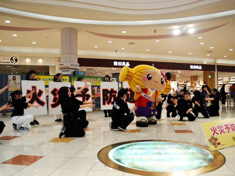 当日はイオンモール1階メインコートにて本校ダンス部を含む6つの団体が参加し、この運動の周知と防火意識を高めるための呼びかけを行いました。