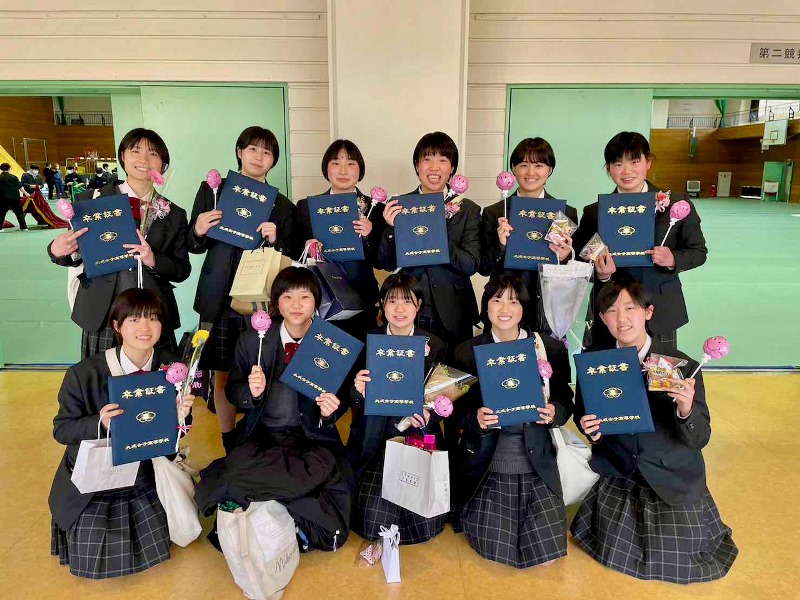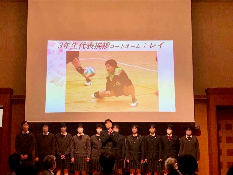 コロナ禍の影響で、入学式の翌日からオンライン授業が始まり、なかなか思い描いていたような部活動ではなかったと思います。ただ、一人も欠けることなく、最後まで様々な葛藤や課題と向き合いながら頑張りました。キャプテンの挨拶にもあったように、しっかり練習ができた昨年の夏休みくらいからチームらしくなりました。最後は春高バレーには出場できませんでしたが、そこまでの過程には胸を張ってそれぞれの進路先で活躍することを期待しています。