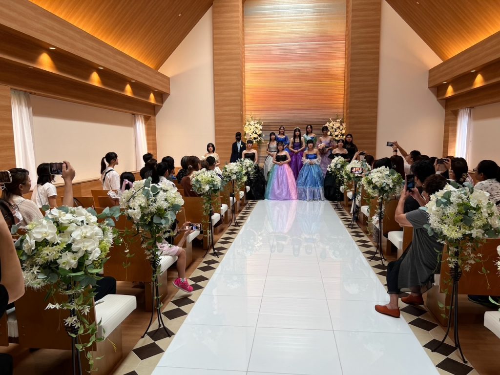 またホテルのチャペルをお借りして、家政科のファッションショーを行いました。生徒たちの作品がチャペルの雰囲気でより素敵に映えました!