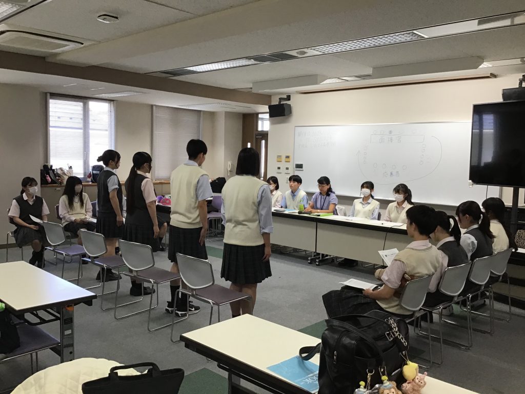 後半は、採用側の視点を学んだ後、自己PRを考えて、ドキドキしながら全員、模擬面接に挑戦しました。講師の先生からは、こんなに真剣に取り組んで頑張る学校はないと、お褒めの言葉をいただきました。