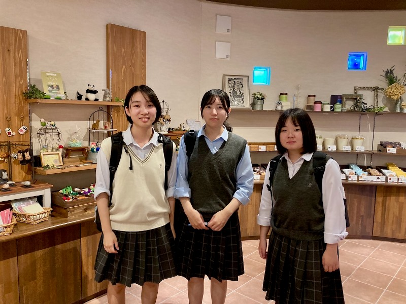 8月20日(火)利用者が製作したお菓子を撫子祭で販売するため、JRC部の3年生で「くれよん工房」を見学しました。