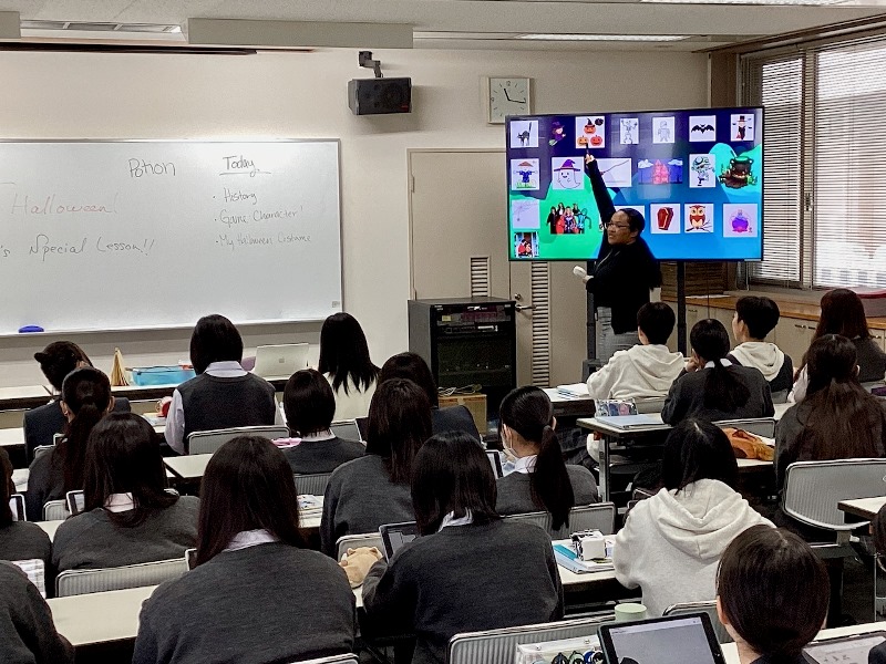 Halloweenが近づいてきました。1〜3年生の英語コミュニケーションの授業で、Nia先生の特別授業を行っています。