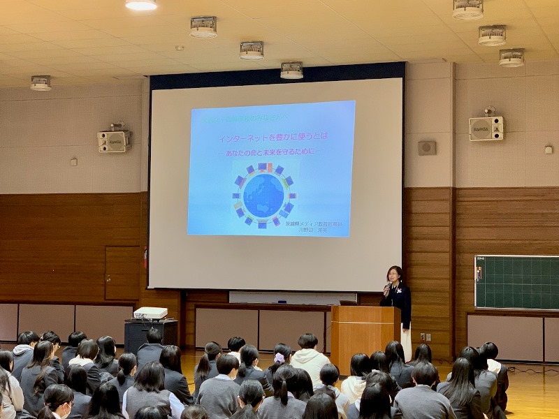 茨城県メディア指導委員の川野邉先生をお招きして、携帯電話安全教室を実施しました。