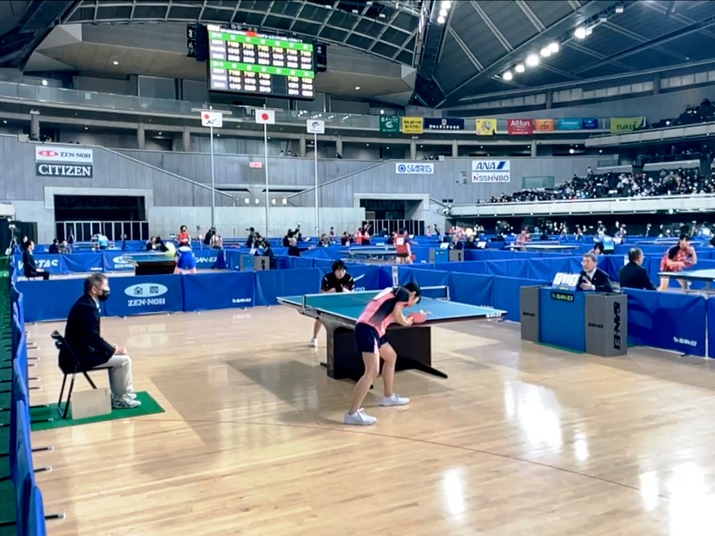 厳しい県予選を勝ち抜き、2年連続で全日本に出場した堀内は、1回戦で長崎県代表の長崎女子商業高の選手と対戦し、3-1で勝利することができました。
