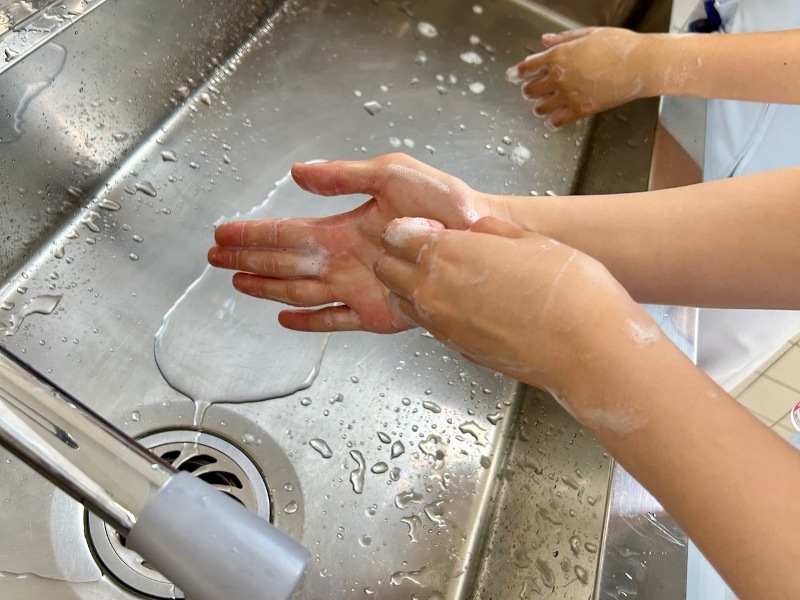 「今回行った、エプロン・サージカルマスク・アイシールド・手袋を衛生的手順で装着・着脱では、実際に見て手順を練習する中で、焦らず、落ち着いて、動くことや手指消毒のタイミングを学びました。患者さんだけでなく、自分の周囲の人たちも感染から守るために大切な学びだと感じました。順番や方法を正しく覚えることが、重要で、特に脱ぐときは清潔な部分に触るということが必要だと分かりました。」