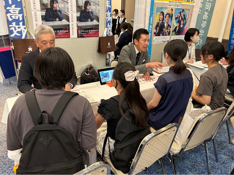 当日は、中学3年生だけでなく、2年生や小学生までがブースに来場し、30人以上の生徒やその保護者に、進学相談を受けていただきました。