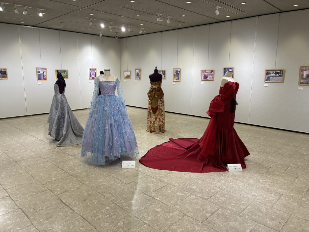 今回の作品展では、『アートと書とドレス』と題し、普通科アート表現フィールド2年生のデッサンと3年生のコラージュ、1年生の書道選択者の刻字作品、家政科ファッションデザインコース3年生が制作したドレスを展示いたします。表現の方法はそれぞれ異なりますが、生徒たちが思いを込めた作品です。ご高覧いただけますと幸いです。