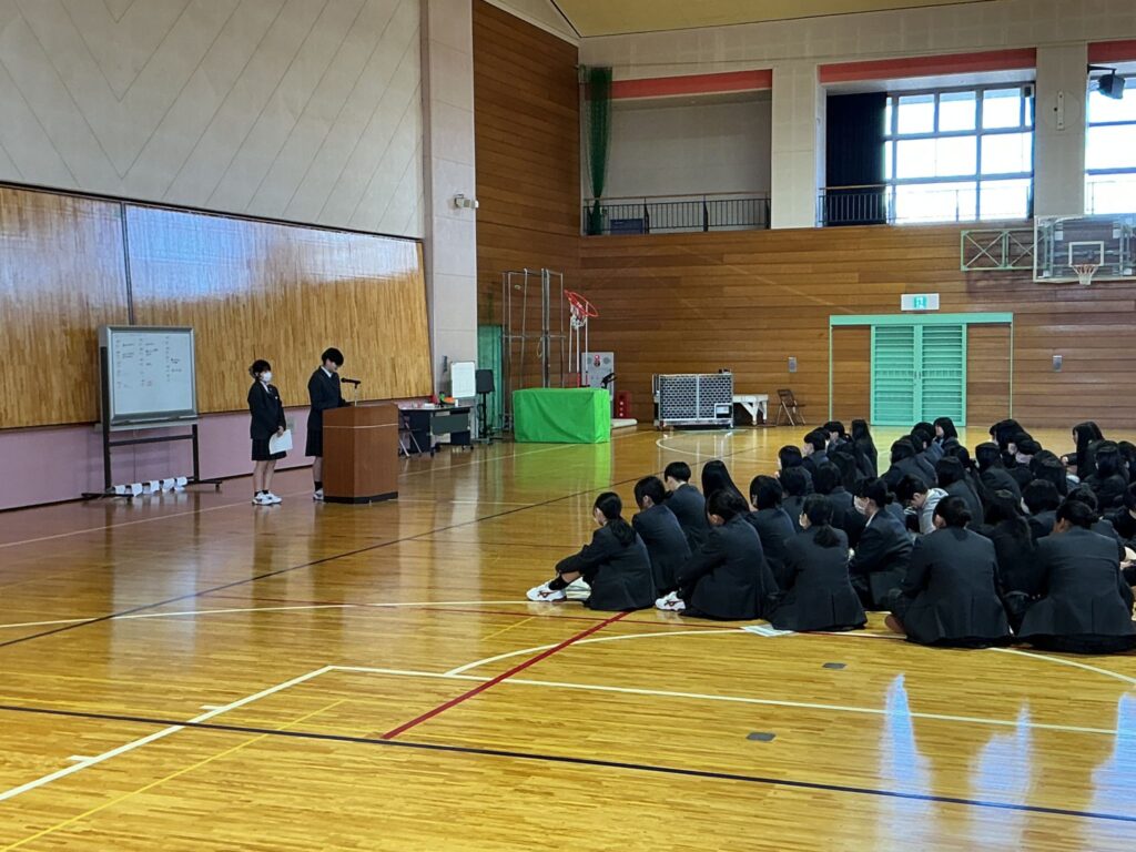 最後は、各クラスのHR委員が、クラスを代表して、今年度を総括するスピーチをし、クラスでの友人関係や部活動、遠足やスポフェス等の学校行事の思い出について話しました。