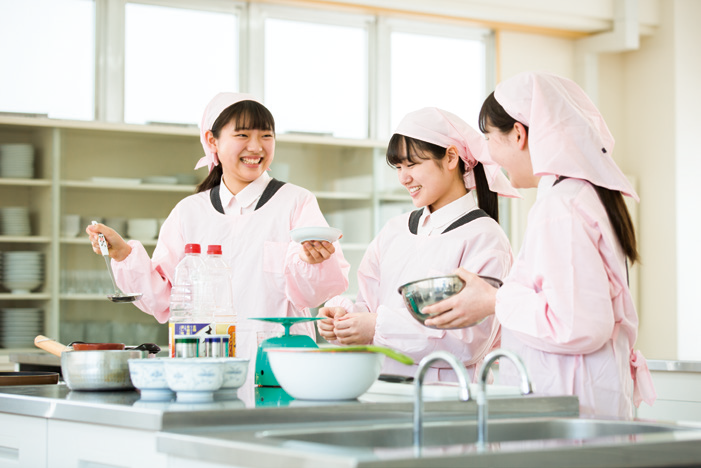 調理技術の習得だけでなく、食品学・栄養学的な実験や、地産地消を意識した献立作成、製菓実習など、食に関する幅広い授業を行います。