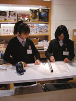 実際に売場で接客をさせてもらいました。「いらっしゃいませ」の声が小さかったり、丁寧な言葉で話さなくてはいけないのに、いつも自分が話しているような言葉が出そうになったりと、大変でした。しかし、販売員の方が優しくフォローしてくださったので、とても心強かったし嬉しかったです。今まで自分が何気なく買い物をしていた裏には、販売員さんの気づかいや努力、そしてお客様を大切にする思いがあったことを初めて知りました。この体験で学んだことを、自分の将来につなげたいと思います。