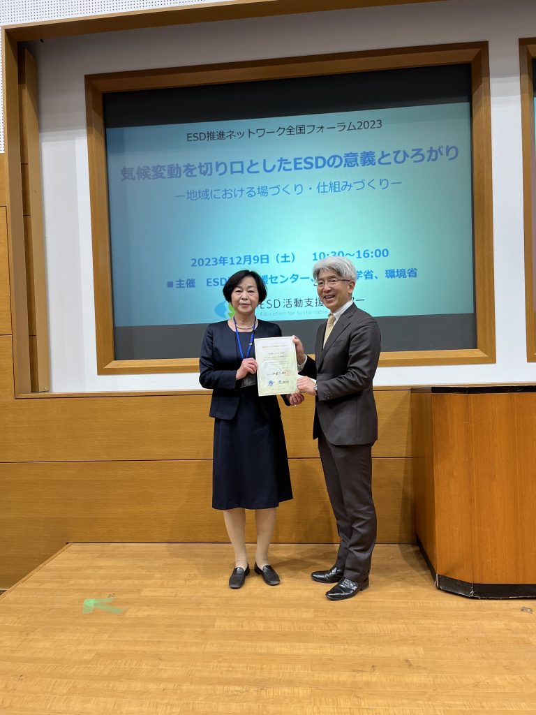 2023年12月9日に東京で行われた「ESD推進ネットワーク全国フォーラム」に青木園長が出席し、認定証をいただきました。
