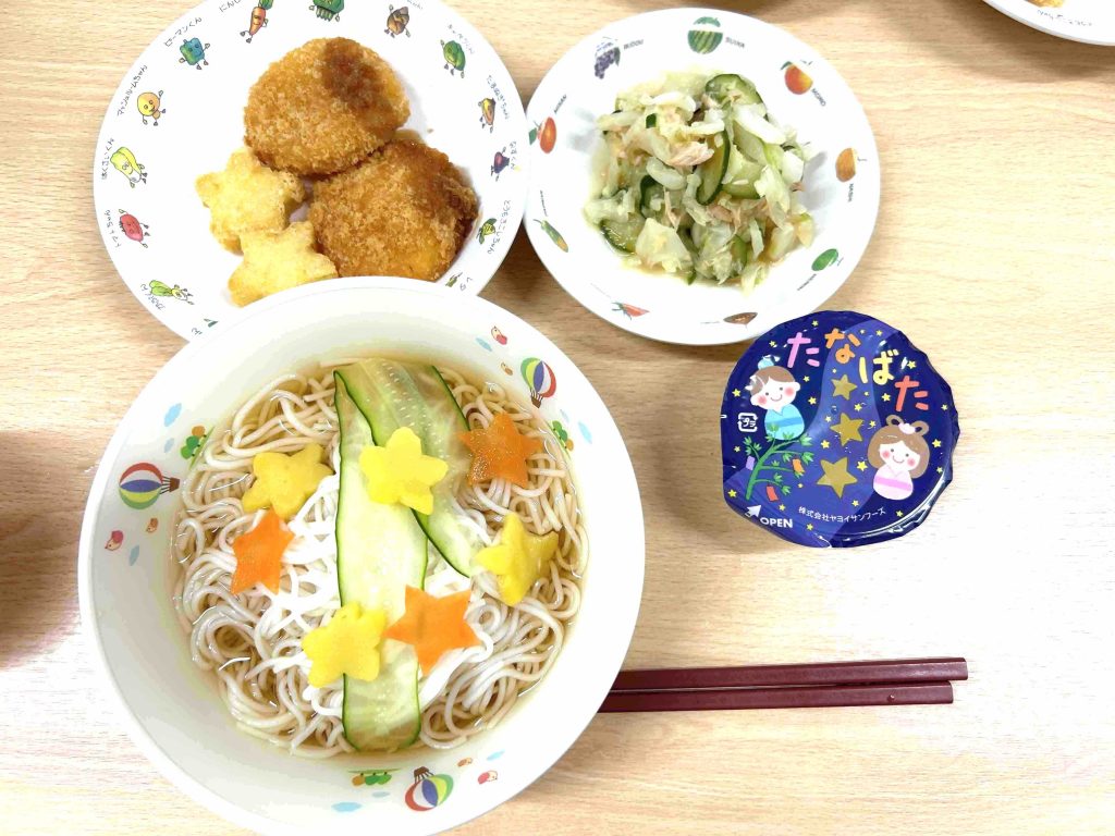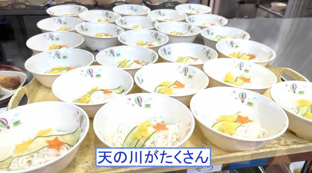 お昼は七夕そうめん‼️素敵な天の川がお皿を彩っていますね😋とってもおいしくいただきました✨